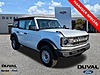 This 2025 Ford Bronco in Oxford White, features Equipment Group 101A, 4-Wheel Disc Brakes, 4.46 Axle Ratio, 7 Speakers, ABS brakes, Air Conditioning, AM/FM radio: SiriusXM with 360L, AM/FM Stereo, Auto High-beam Headlights, Brake assist, Cloth Bucket Seats, Compass, Delay-off headlights, Driver door bin, Driver vanity mirror, Dual front impact airbags, Dual front side impact airbags, Electronic Stability Control, Emergency communication system: 911 Assist, Exterior Parking Camera Rear, Front anti-roll bar, Front Bucket Seats, Front Center Armrest, Front reading lights, Front wheel independent suspension, Fully automatic headlights, Heated door mirrors, Illuminated entry, Integrated roll-over protection, Low tire pressure warning, Occupant sensing airbag, Outside temperature display, Overhead airbag, Overhead console, Panic alarm, Passenger door bin, Passenger vanity mirror, Power door mirrors, Power steering, Power windows, Radio data system, Remote keyless entry, Security system, SiriusXM w/360L, Speed control, Split folding rear seat, Steering wheel mounted audio controls, SYNC 4, Tachometer, Telescoping steering wheel, Tilt steering wheel, Traction control, Trip computer, Variably intermittent wipers, and Wheels: 16'' Bright Polished Silver-Painted Steel: 4WD **COMMISSION FREE SALES PEOPLE, **1ST OIL CHANGE FREE.<br><br><br>Prices are plus tax tag title $398 Electronic Filing Fee and dealer pre-delivery service fee in the amount of $1199 which charge represents cost and profit to the dealer for items such as cleaning inspecting and adjusting new and used vehicles and preparing documents related to the sale. Call us today at 904-387-6541 or visit us on the web at www.duvalFord.com. Price includes: $2500 - Retail Customer Cash. Exp. 03/31/2026